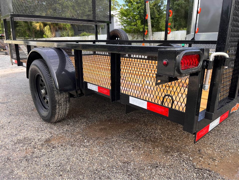 76 x 12 single axle utility/ landscape trailer – 3500# Dexter axle – Payload capacity- 2420 lbs. – Tongue box – Landscape basket – 14” expanded metal sides – (1) 3 tier weed eater rack – 15” radial tires & wheels – spare tire & mount included – 2K RAM jack – 48”h gate w/ Reinforced steel square tube – 2” coupler – 2×2” steel square tube top rail – LED light package – 2×8 pressure treated wood deck – wraparound steel channel tongue – 2” coupler – 4 flat pigtail – powder coated paint – One year warranty