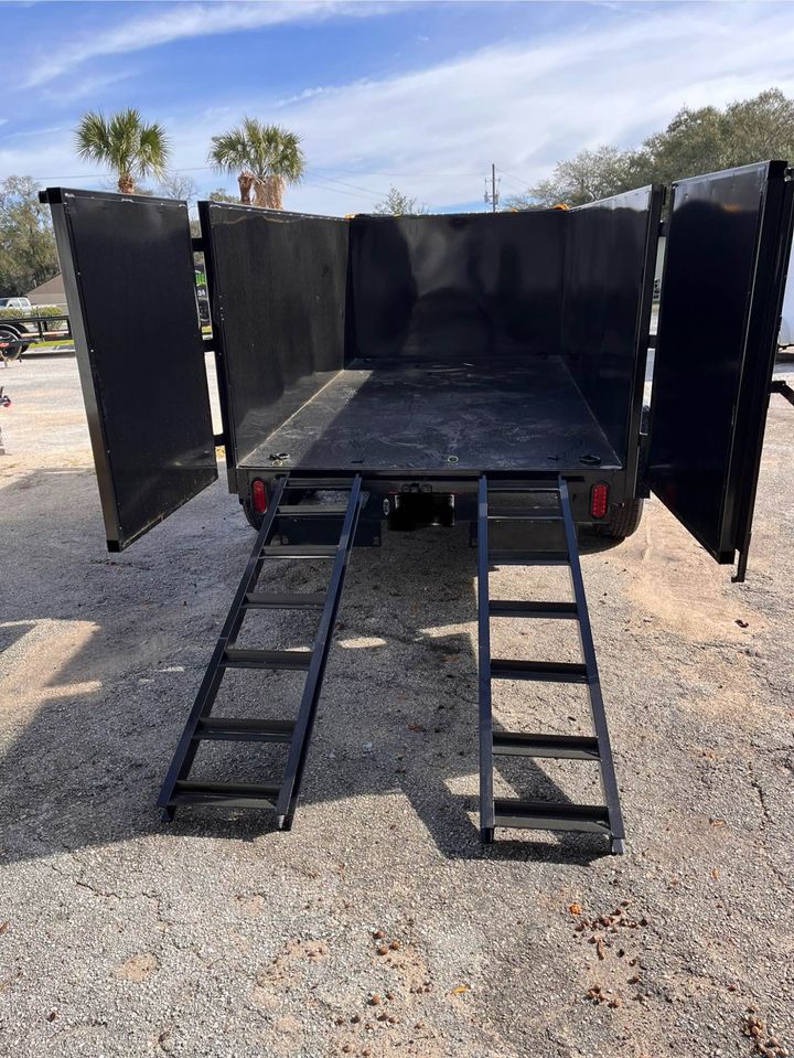 – 2/5200# Dexter brake axles – 4’ sides – 10,400 GVWR, payload capacity- 6680#, 10ga floor – Dual rams – 6’ rear slide out ramps – Barn doors w/ hold backs – D rings on floor – HD tread plate fenders w/ steps – lockable tongue box w/ power unit & charger – Tarp – spare tire & mount – 2 5/16” adjustable coupler – Powder coated paint – 7k drop leg jack – One year warranty