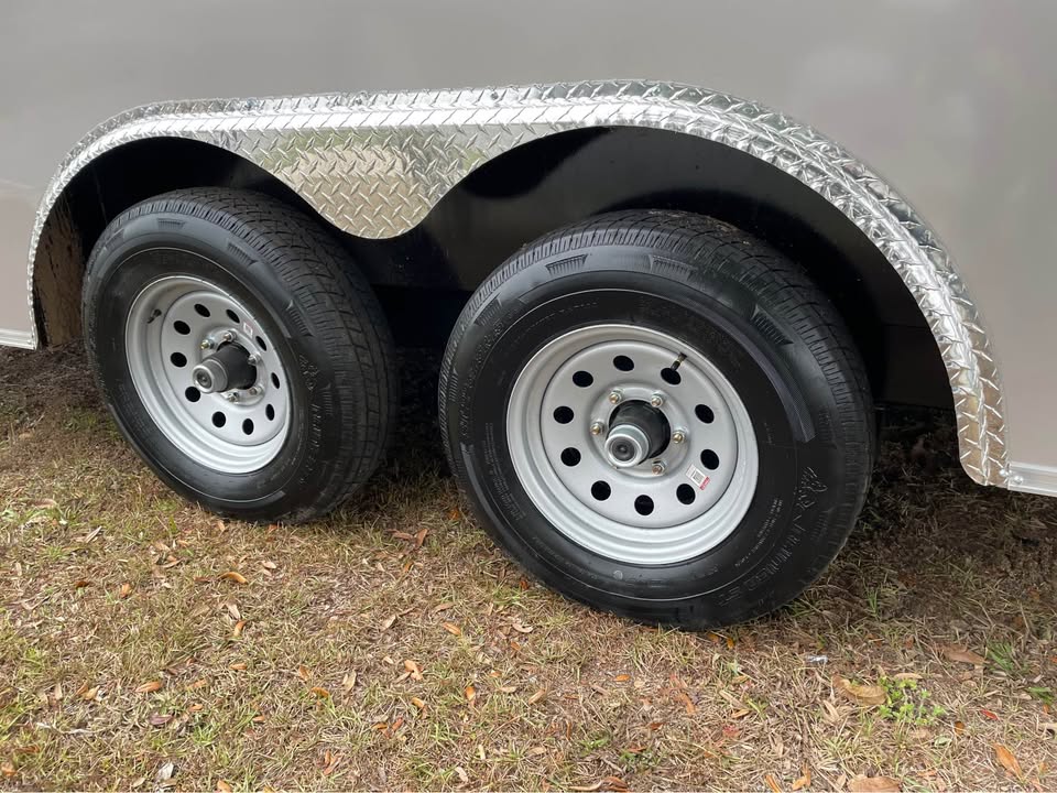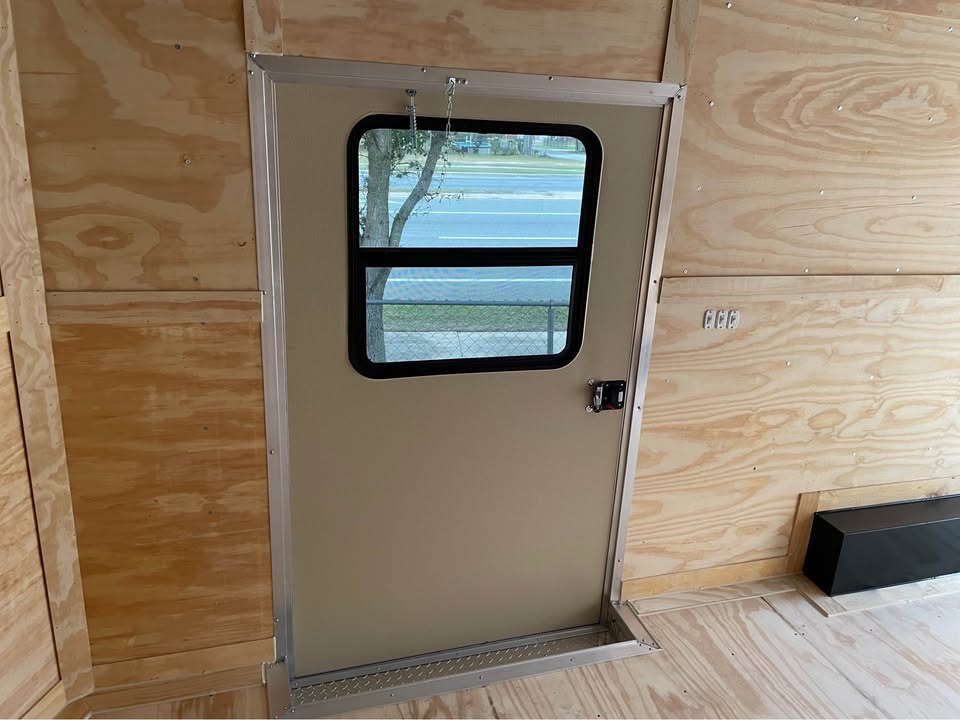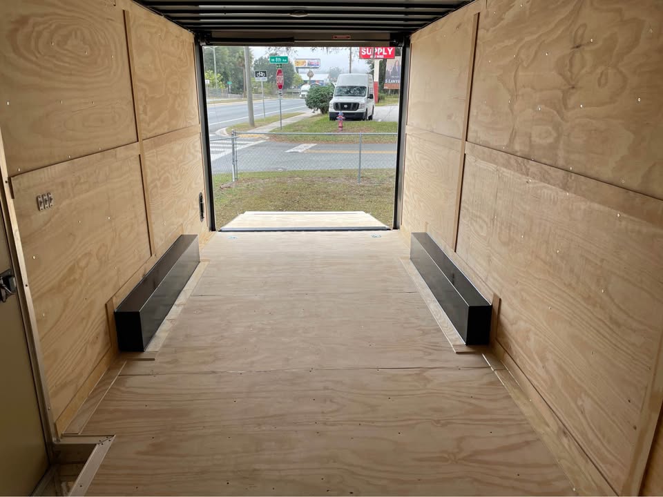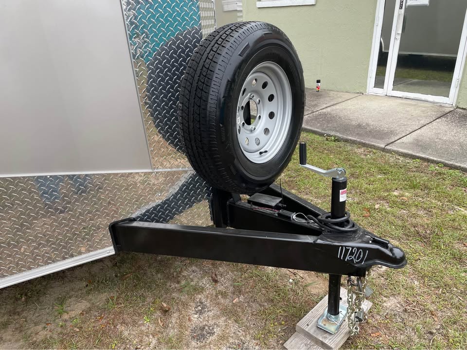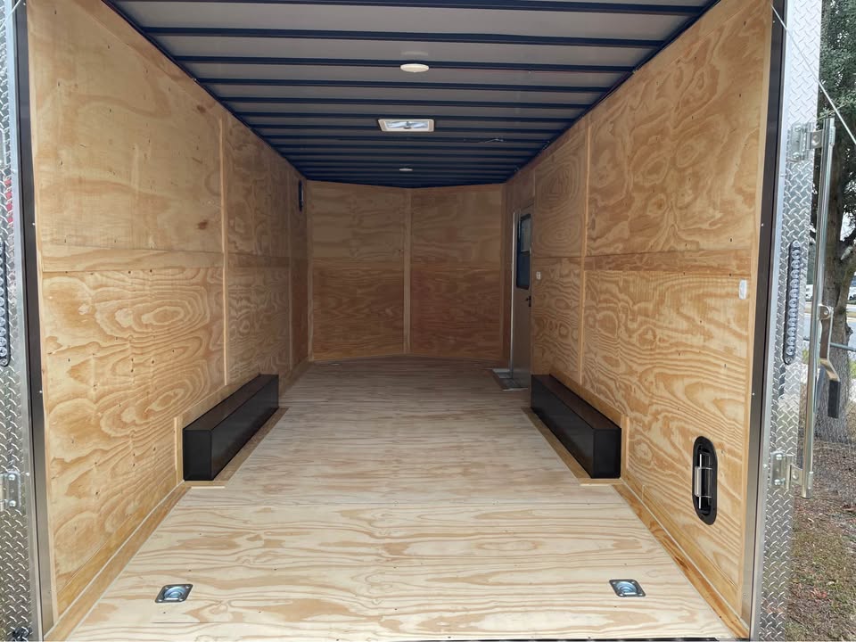 – 20’ + 2’ V Nose – 2/6000# (12,000GVWR) Suretrac Brake Axles – 7’ 6” Interior Height – .080 PolyCor siding – 60” Triple tube extended tongue (Extended Tongue) – Spare Tire Mounted on Tongue – “12” OC Crossmember Floor” – 16” OC Walls & Celing – One Piece Aluminum Roof – Thermoply ceiling liner – HD Ramp Door w/ Transition Flap & Steel Transition Flap – Roof Vent – 48” RV side door w/ flush lock & bar lock – 30×30 Slider Window Tinted w/ Screen in Side Door – 4’ LED Kemper Interior Light – 2 Way Aluminum Side Vents – LED Loading Lights on Rear & Side Doors – LED Light Package – 2 5/16” coupler – 7 way Bargman plug – 5 year limited manufacturer warranty