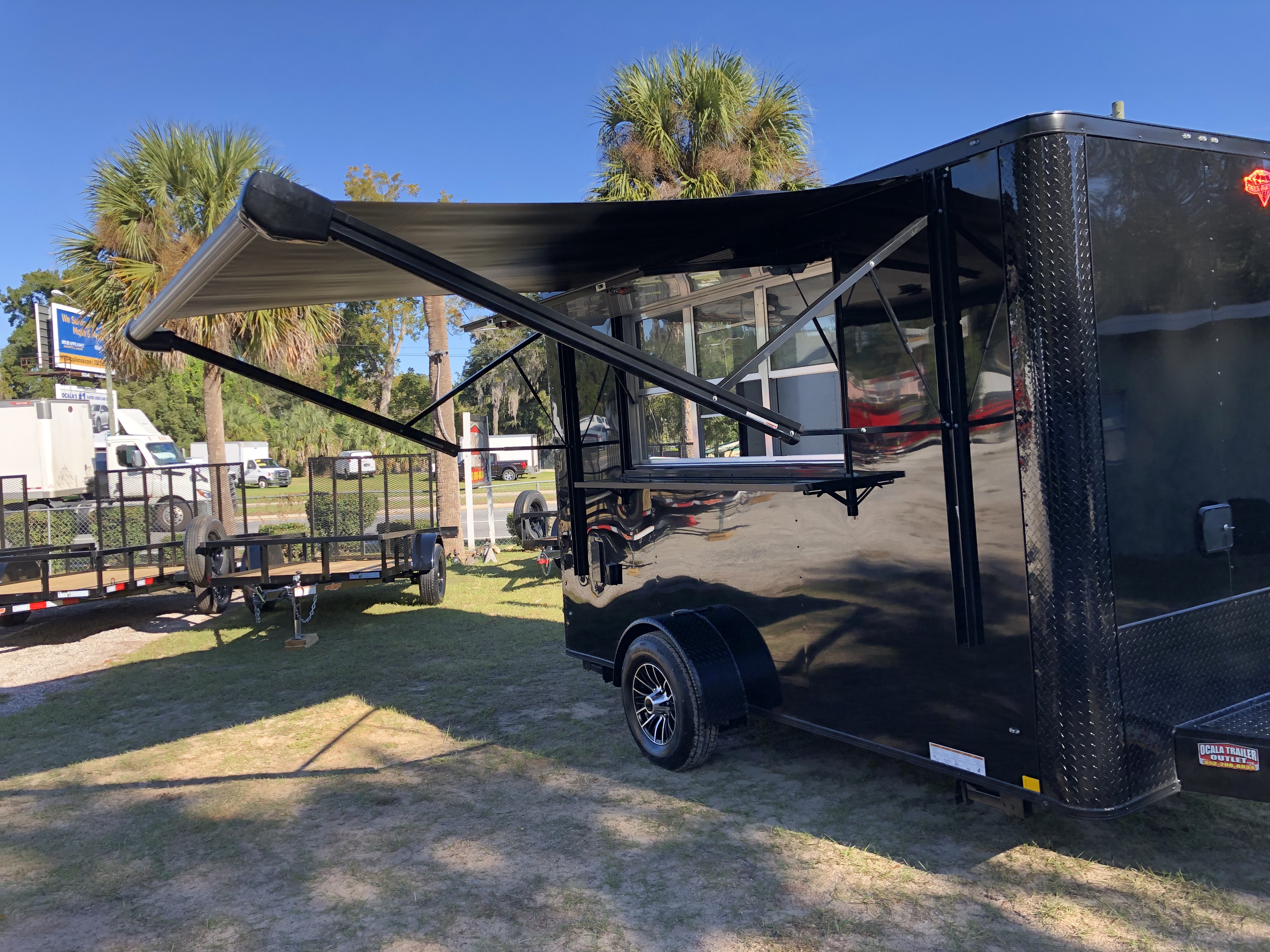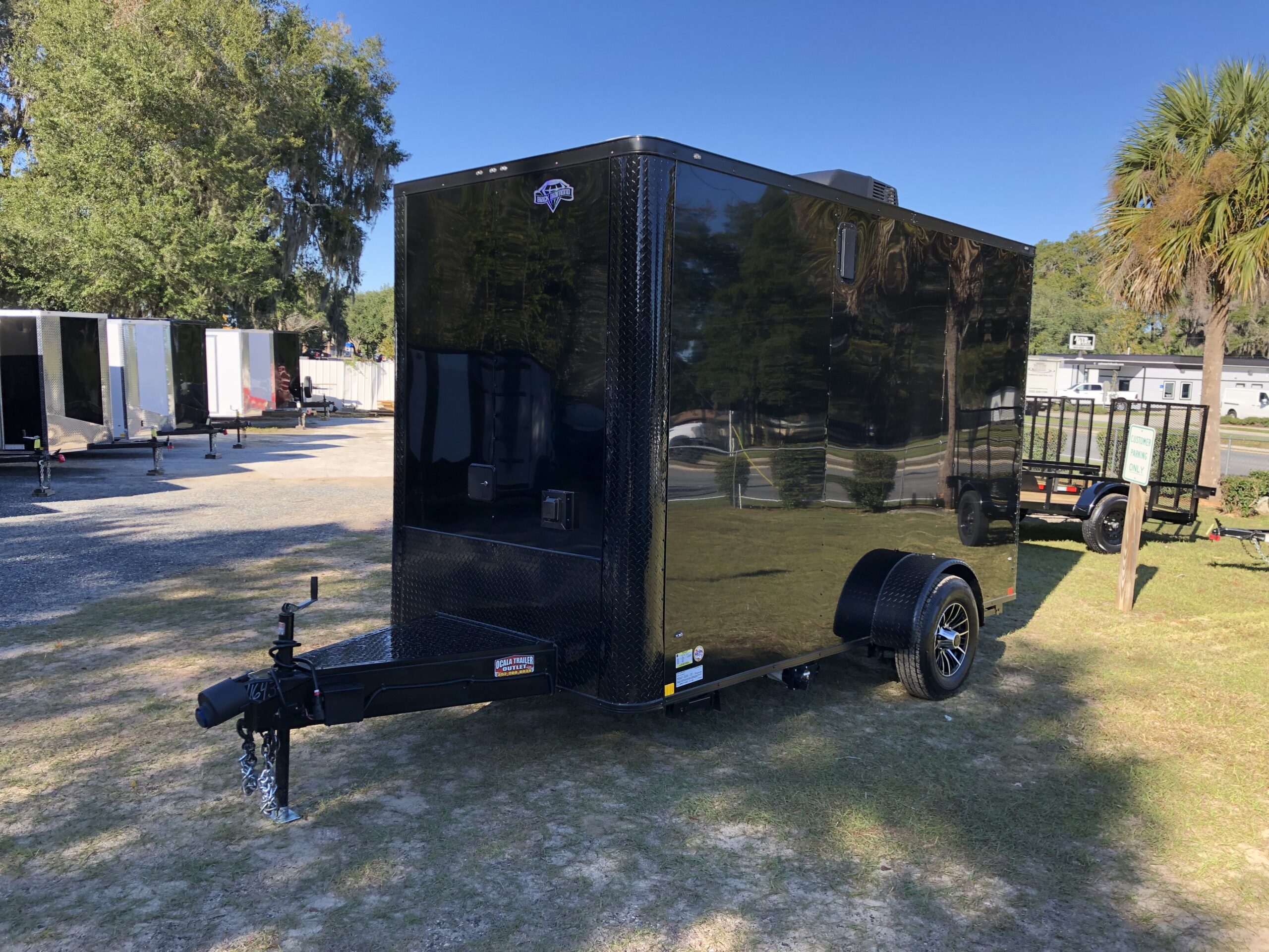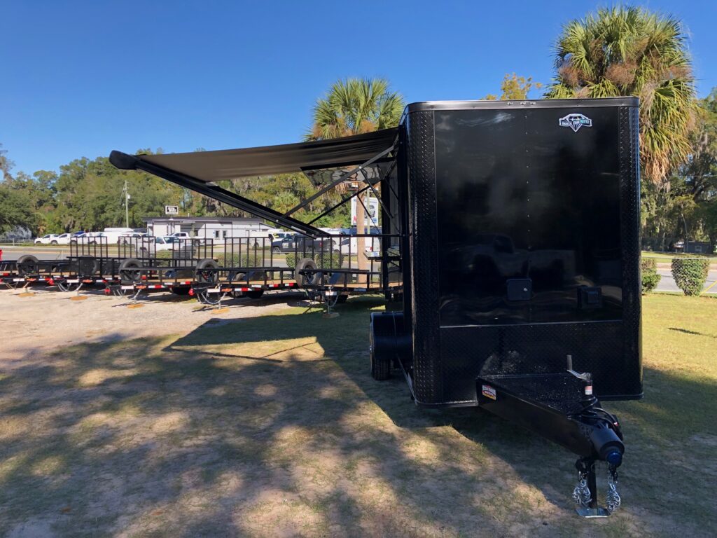 We offer custom trailers of the highest quality and the lowest prices in North Central Florida. Diamond Cargo is a highly reputable brand. Pictured are some of the recent custom builds we’ve done for local businesses in Marion County. Standard trailers take 2 weeks to arrive. Heavy option trailers take about 6-7 weeks. Contact Derek at OcalaTrailerOutlet.com to get started on your new build.
