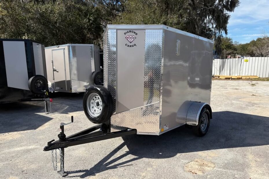 1 IN STOCK-2026 Diamond Cargo Trailer 5×8 single axle – 8’ + 2’ V nose – 6’ interior height – 3500# axle w/ EZ lube… Read More »2026 DIAMOND CARGO 5X8SA Champagne